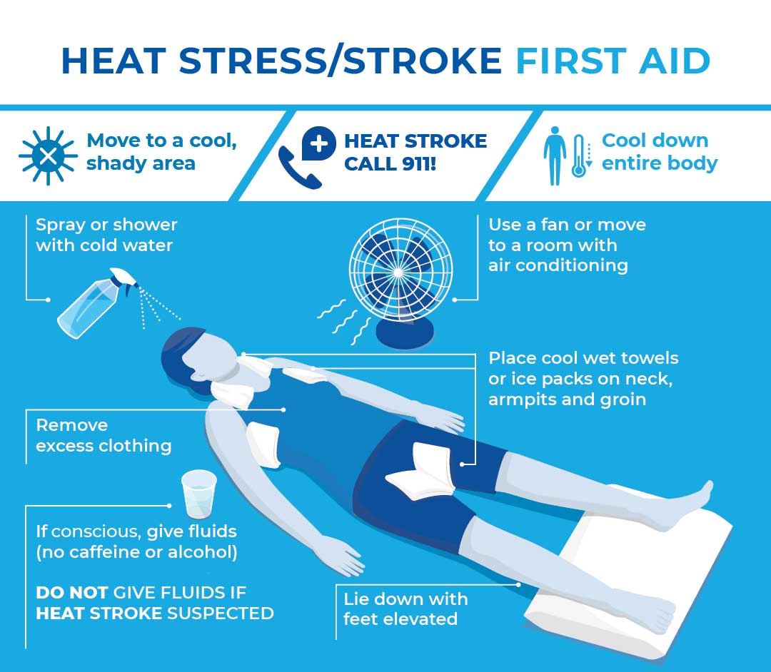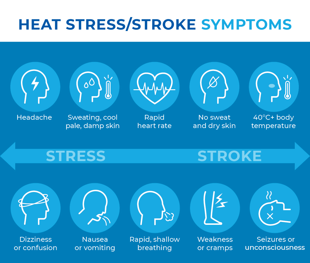 - Make workers aware of the signs, symptoms, and prevention of heat stress and heat stroke. Remind them where to get first aid, if needed.