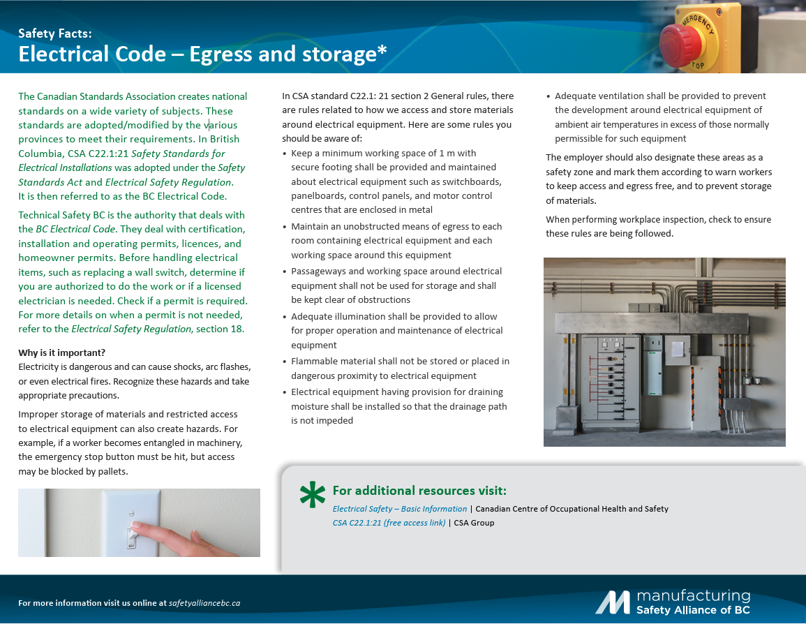 Electricity is dangerous and can cause shocks, arc flashes, or even electrical fires. Recognize these hazards and take appropriate precautions. In this Toolbox Talk, get the basics of the BC Electrical Code—also known as the Safety Standards Act and Electrical Safety Regulation adopted from the Canadian Standards Association's CSA C22.1:21 Safety Standards for Electrical Installations.